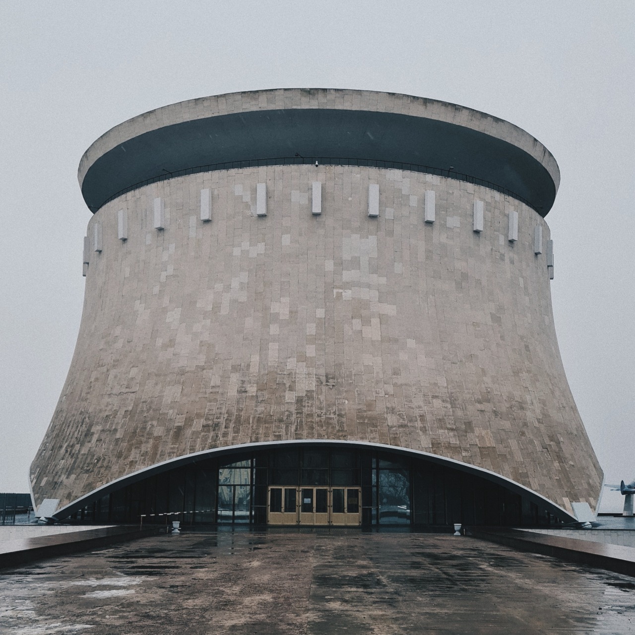 Погода начала портиться, и мы решили закончить прогулку на музее-памятнике Сталинградская битва. Архитектурный ансамбль из руин мельницы Гергардта, обелиска Штык и футуристичного музея Сталинградской битвы.